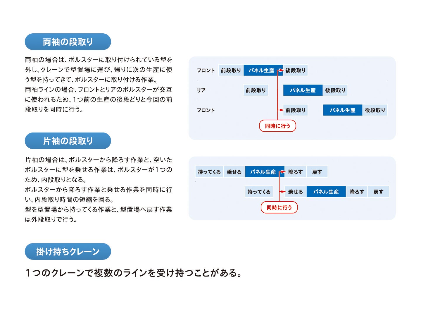 大型部品生産ラインの複雑な段取への対応例