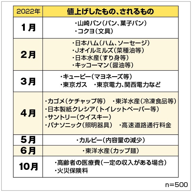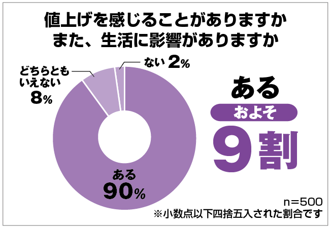 2022年の値上げラッシュ「影響がある」はおよそ9割。値上げされると困るものは?男女500人アンケート調査結果
