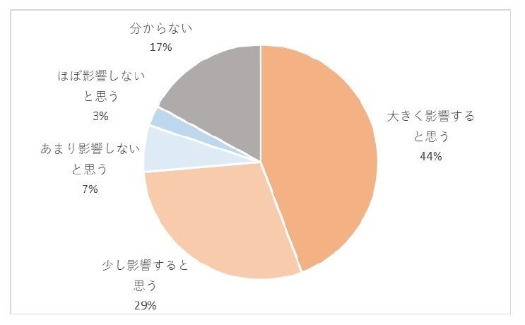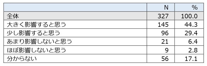 最も回答が多かったのは「大きく影響すると思う」で44.3%だった。