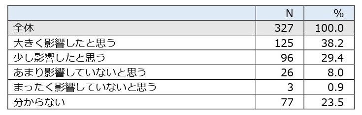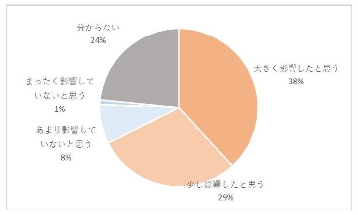 最も回答が多かったのは「大きく影響したと思う」で38.2%だった。