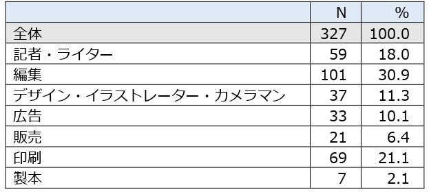 対象者:新聞/雑誌/フリーペーパーの、執筆・編集/出版・発行/印刷/製本などに携わる人327名