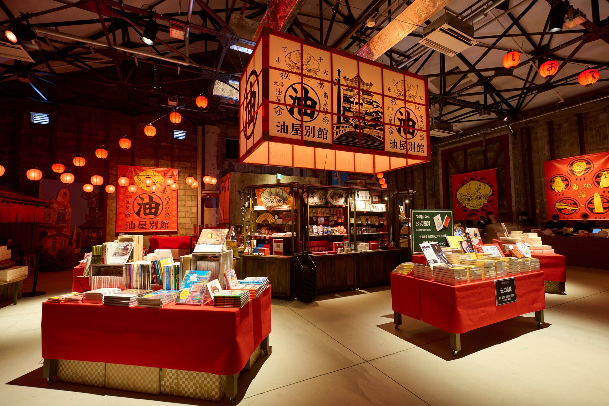 「油」と書かれた巨大行燈の下に広がるのは、映画「千と千尋の神隠し」の世界に迷い込んだような巨大空間「油屋別館(あぶらやべっかん)」。東京展限定で登場します。全体に赤い提灯が吊るされた空間は、まさに別世界。