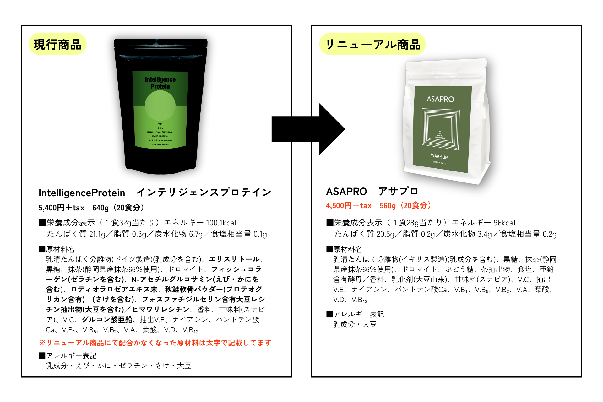プロテインは筋肉のためだけではなく、健やかな心身に必要な栄養です。元の商品は心身の好調をサポートしたいという思いから作っていたものですが、僕自身が朝の時間を大切にしていることから、元の思いはそのままに「朝のコンディショニングとして飲むプロテイン」としてリニューアルすることにしました。より多くの方に届けられるよう、価格と成分も見直しています。