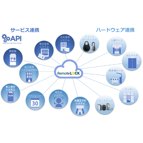 APIを介し、各種予約サービスや業務システム、ハードウェアと連動した解錠キーの自動発行・通知を行うことで、施設のカギの受け渡しの手間や窓口業務の煩雑さを低減できるアクセスコントロールのオープンプラットフォームです。