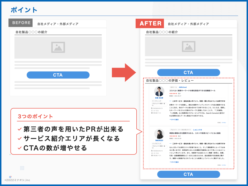 参考:BtoBのコンテンツに自社のレビューを設置するだけでサービスページへのCTRが倍増した調査結果