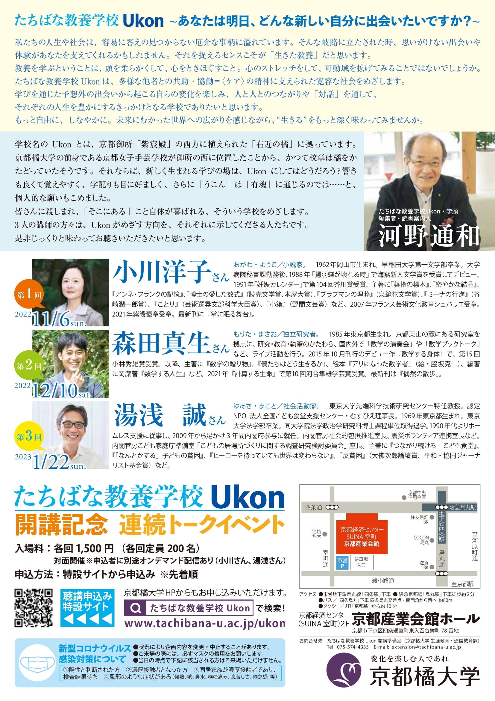 - 「たちばな教養学校 Ukon」開講記念連続トークイベント概要
