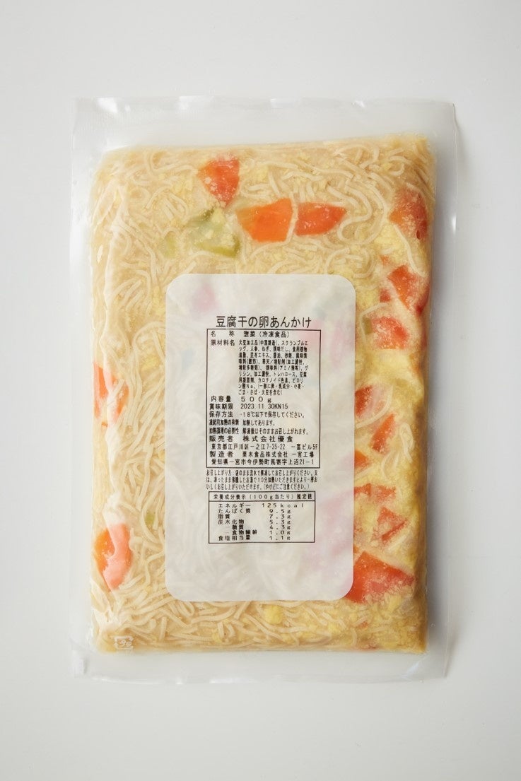 加工食品の開発・販売を行う株式会社 優食(本社:東京都江戸川区 代表:Yuen Gabby-Li 以下、優食)は、自社で製造・販売する大豆食材『豆腐干(とうふかん)』の初の業務用冷凍加工品となる冷凍総菜「豆腐干のグリル野菜とチキンのトマトソース」「豆腐干の中華あんかけ(醤油)」「豆腐干の卵あんかけ」を、2023年3月16日(木)に販売開始いたします。