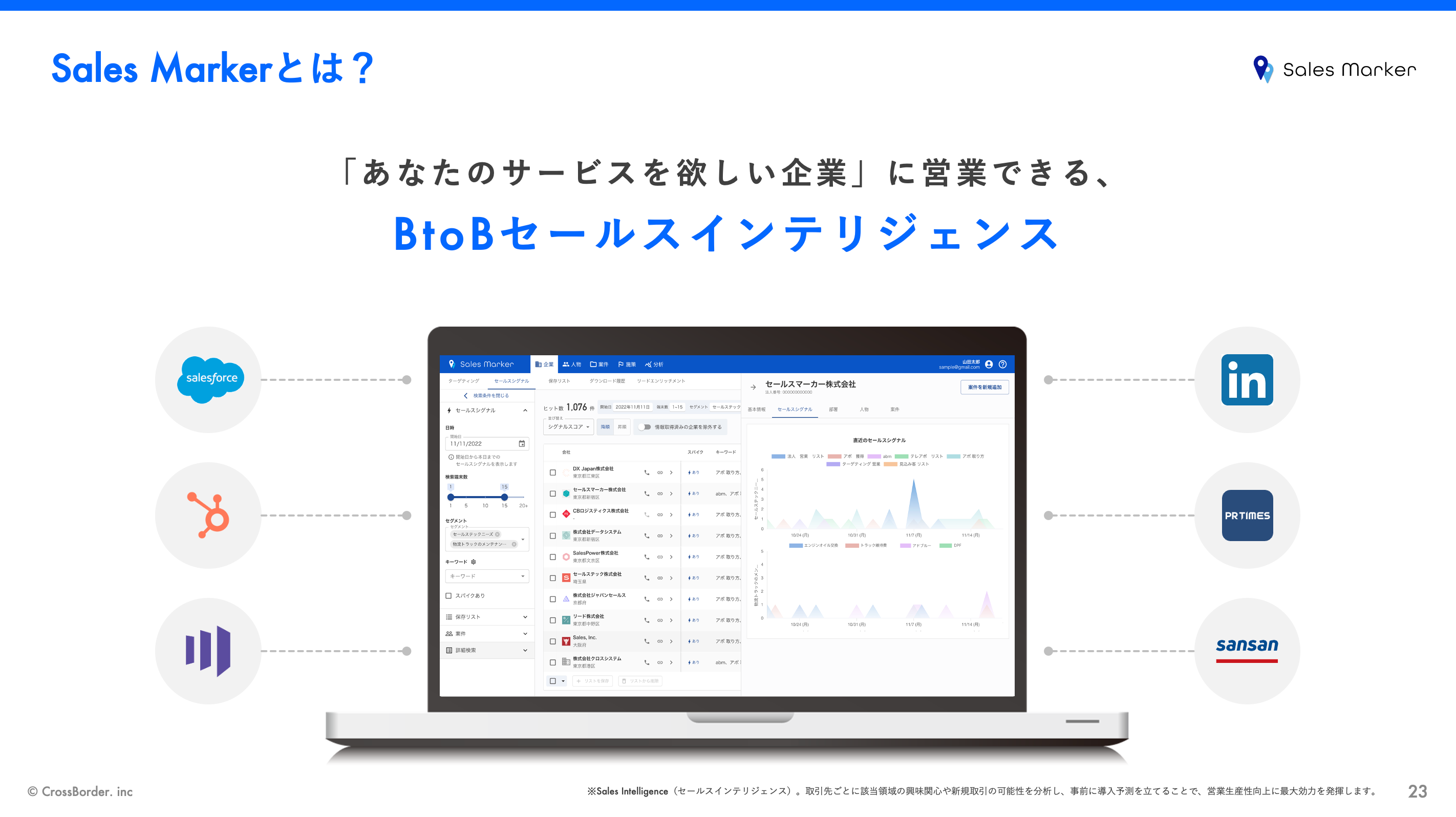 | サービスページ:https://sales-marker.jp/ Sales Marker紹介動画:https://youtu.be/r1scvIG4Qs8 |