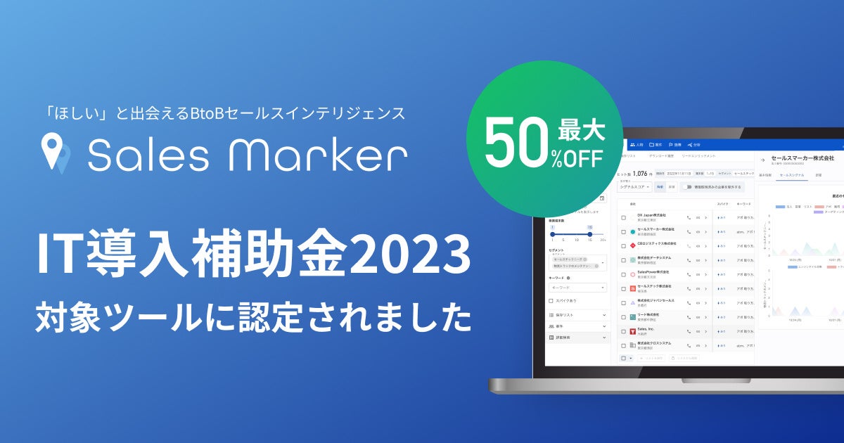 新時代の営業手法【インテントセールス】を実現する、BtoBセールスインテリジェンス「Sales Marker(セールスマーカー)」が経産省「IT導入補助金2023」対象ツールに認定