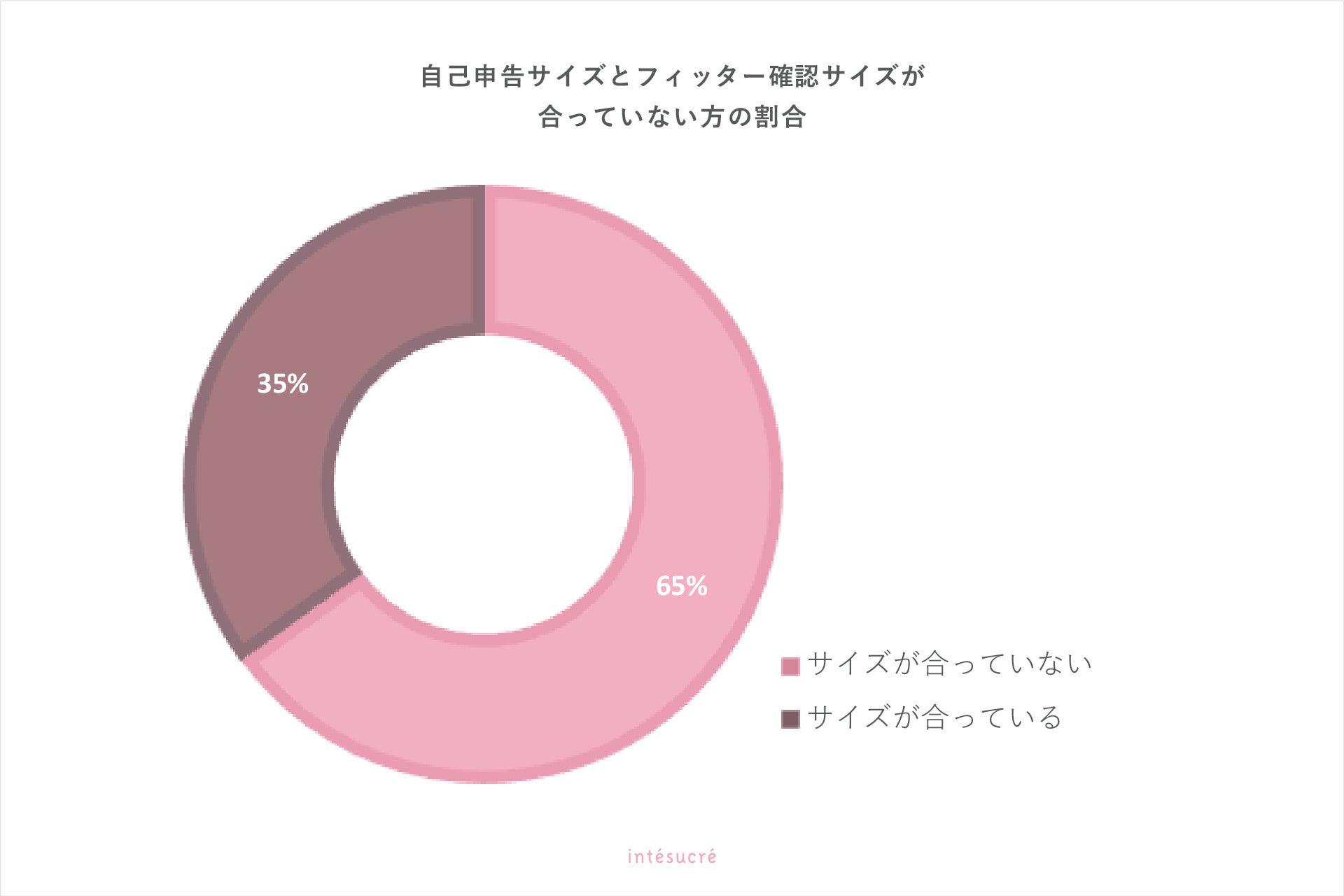 調査によると、アンテシュクレをご利用の女性のうち65%、おおよそ3人に2人の女性がサイズの合っていないブラジャーを着用しているという結果になりました。