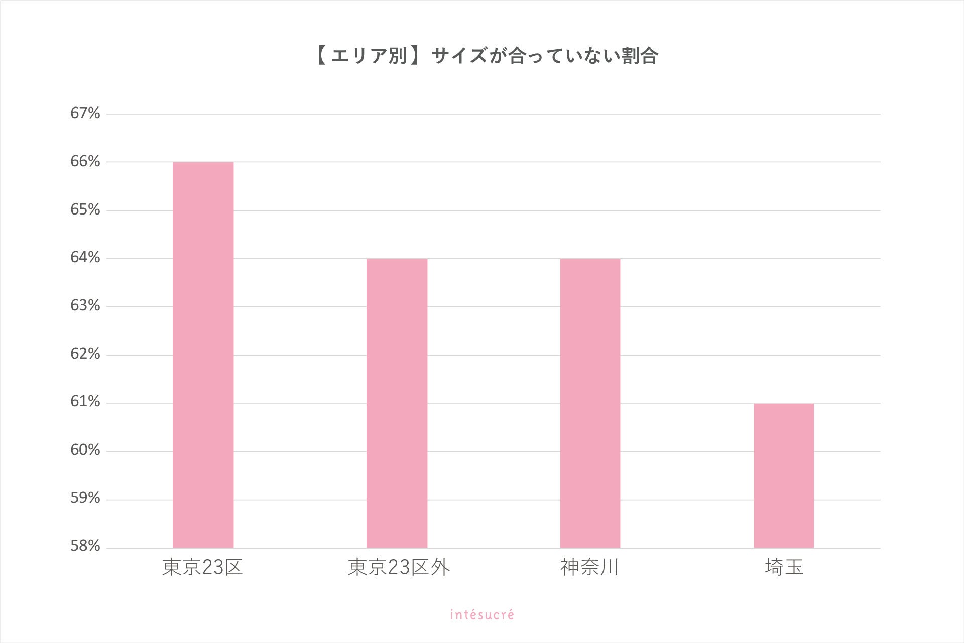 アンテシュクレの実店舗は東京・神奈川・埼玉の駅ビルを中心に展開しており、主な客層は20代~40代と幅広い年代の方がご利用になりますが、20代の若年層の来店が多い傾向の都心エリア(東京23区)ではサイズが合っていない方の割合は他エリアと比較しやや多い傾向にありました。このことは、若年層の方が、自分自身のサイズをまだ測ったことがなかったり、サイズに関する重要性について触れる機会が少なかったりすることが可能性として考えられる結果となっています。