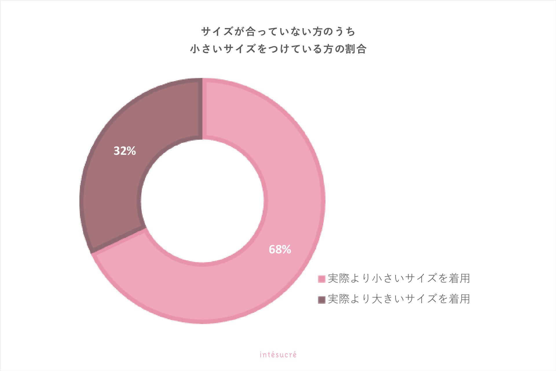 調査によると、サイズが合っていない方の中でも68%の方が小さいサイズを着用していることがわかりました。