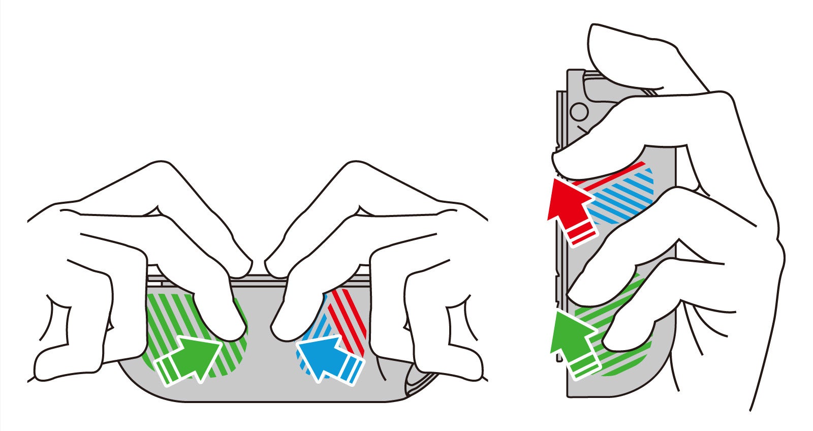 - 背面のグリップにより、3種のどの持ち方でも手にフィット