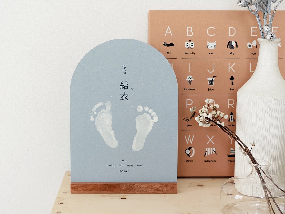 同ブランド40番目の商品となる、赤ちゃんの手形・足形を残せる「命名書」。フォルネ公式オンラインショップだけの限定オーダーアイテムとして新登場です。