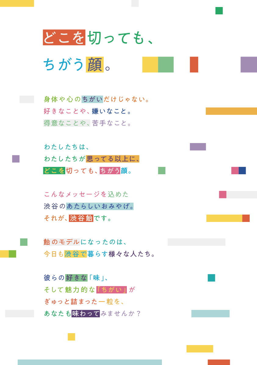 「どこを切っても同じ顔」ではなく「どこを切ってもちがう顔」!飴で渋谷の多様性を発信する「渋谷飴プロジェクト」がスタート