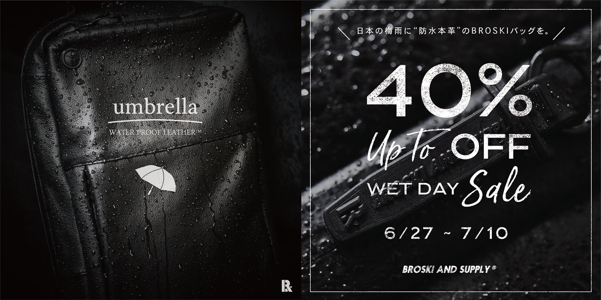防水本革バッグ ブランドBROSKI AND SUPPLY(ブロスキー アンド サプライ)は、6月27日(月)~7月10日(日)にわたり、公式オンラインストアで開催されるBROSKIの特徴を活かせる最大のシーズンに「梅雨を楽しむ最大40%OFFセール」を実施します。