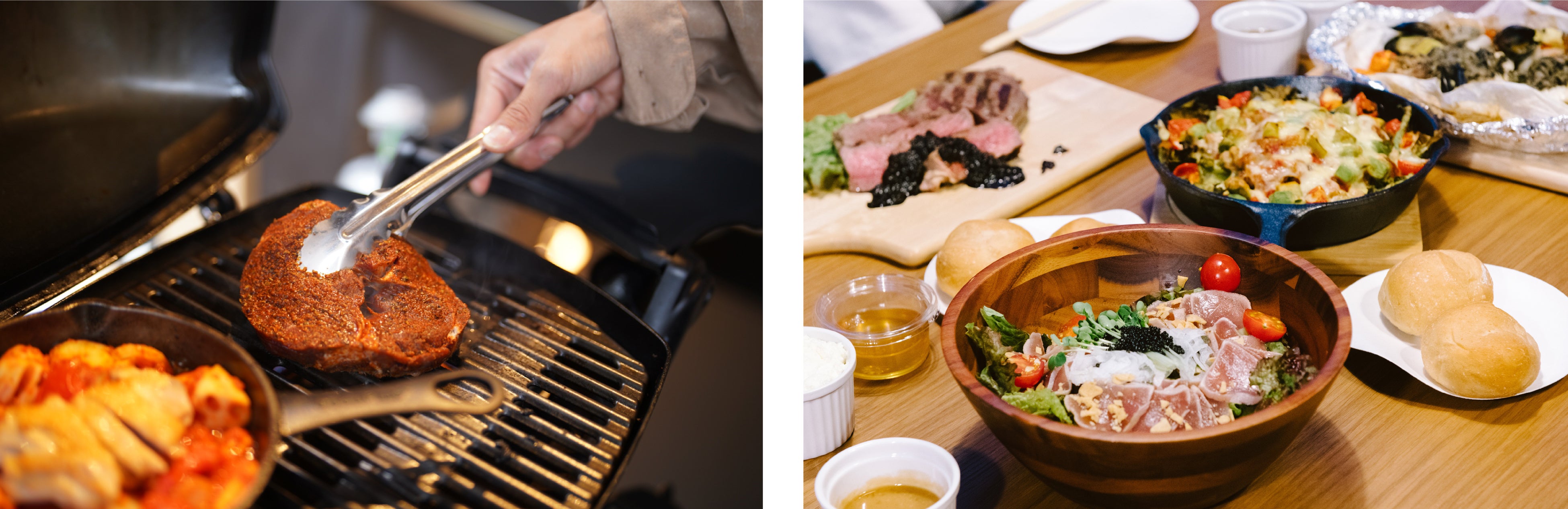 食材の下ごしらえや味付けなどは済んだ状態で準備されており、グリルでの仕上げ調理をお客様に楽しんでいただけます。