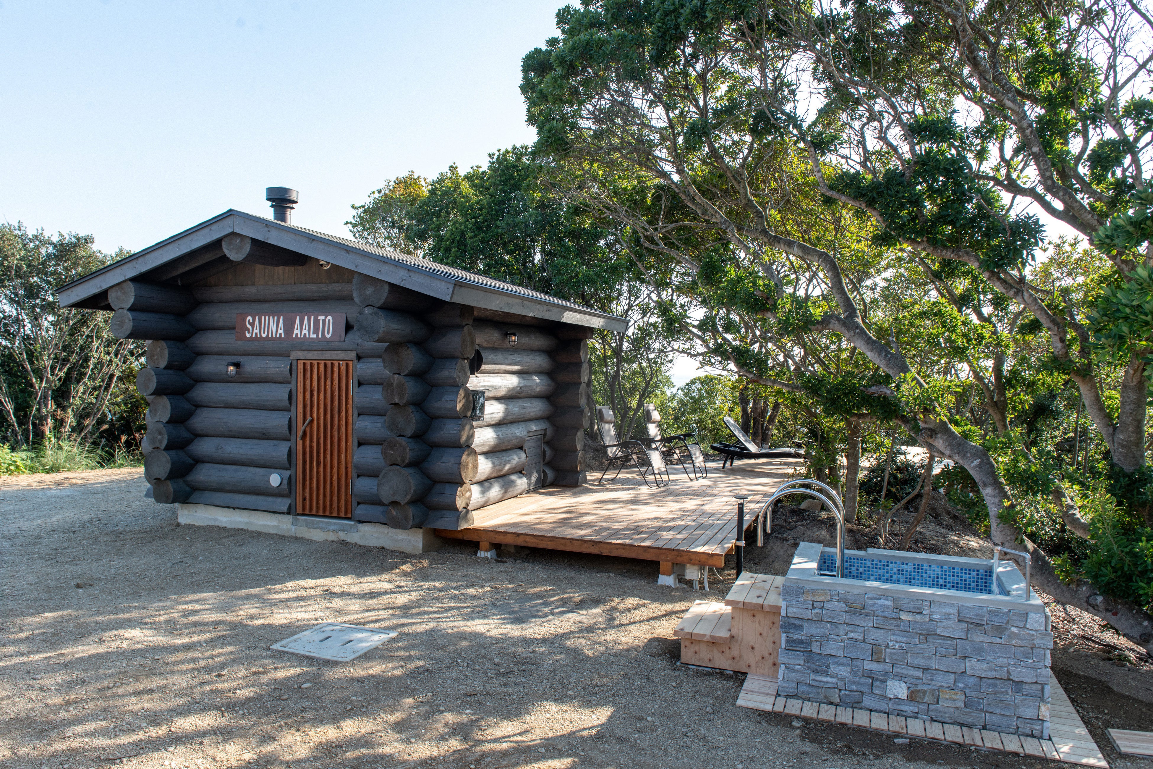 和歌山県白浜町にあるグランピング施設「In the Outdoor白浜志原海岸」は、吉野熊野国立公園のエリア内にあり、「Sauna Aalto」はその敷地内にあります。