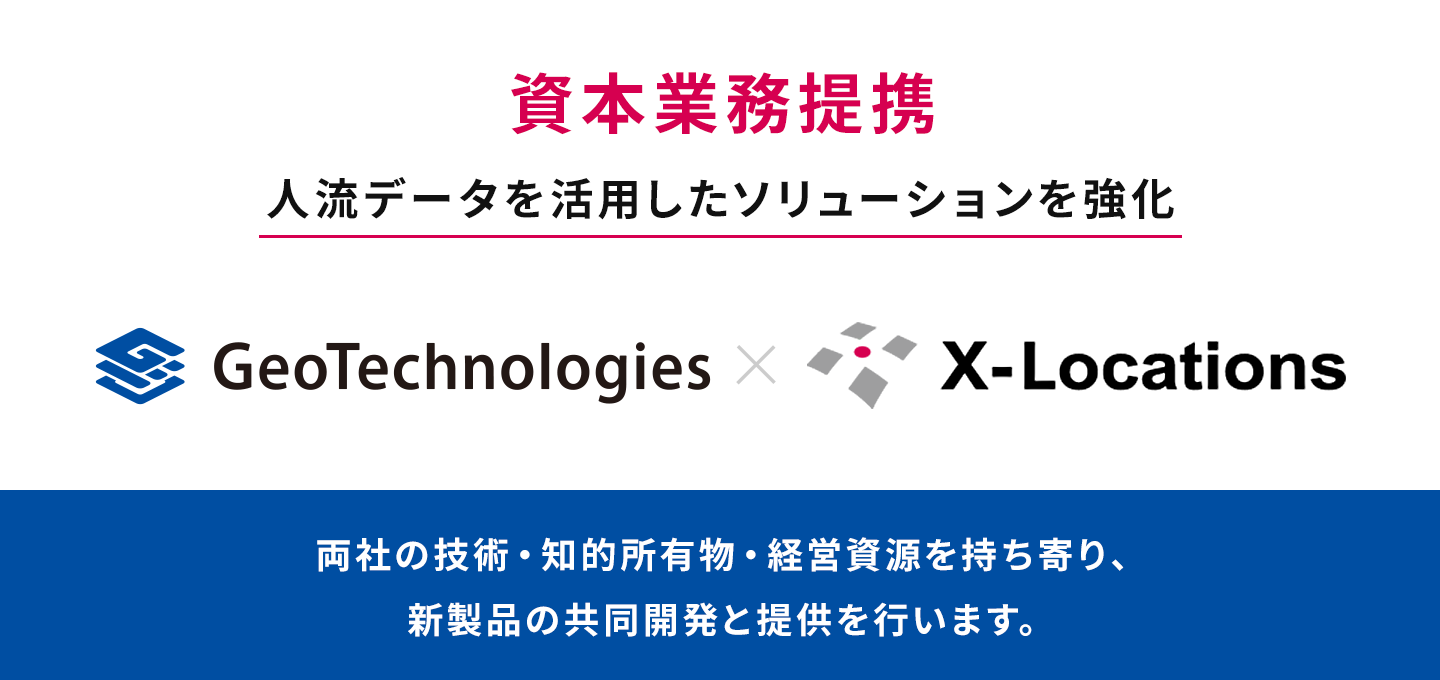 今回、ジオテクノロジーズはクロスロケーションズ社が発行する新株式の一部を取得する事により資本業務提携を行い、クロスロケーションズはジオテクノロジーズが持つ位置情報や人流データをはじめとする、多様かつ膨大なビッグデータおよび、高鮮度・高精度・高品質な地図を利用し、アプリケーションの精度向上を行い、ジオテクノロジーズは、クロスロケーションズの主力製品であるLocation AI Platform®の高度なビッグデータ処理技術とAI技術を利用し、自社が保有するビッグデータの価値向上を行うなど、両社の製品やサービスの一層の高度化を実現する事を可能とします。