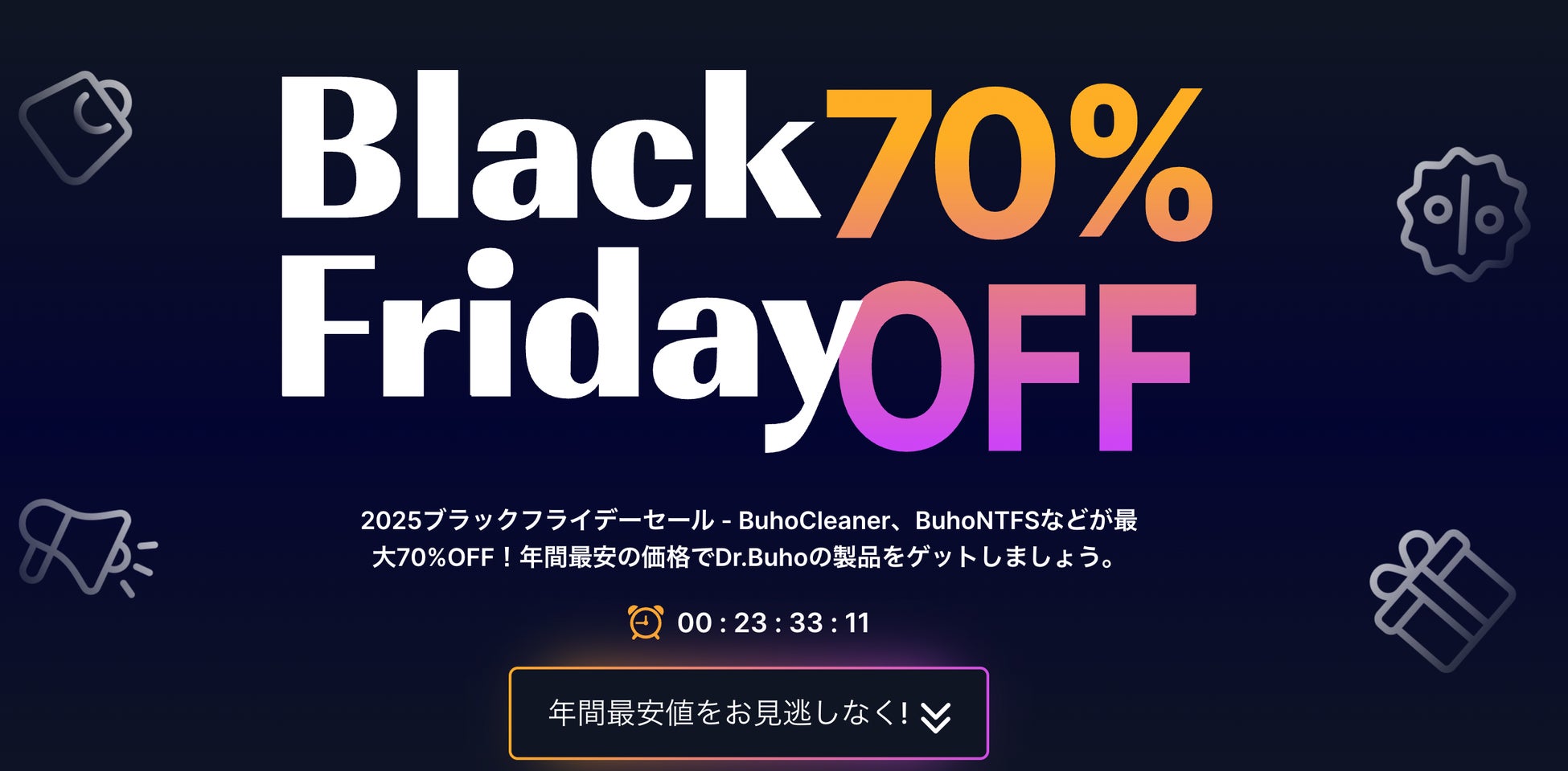 Mac の不要ファイルを高速でスキャンし、安全に削除できる 人気 No.1 のクリーナーツール「BuhoCleaner」 が、今年のブラックフライデーでは 史上最安となる 65%OFF で登場します。