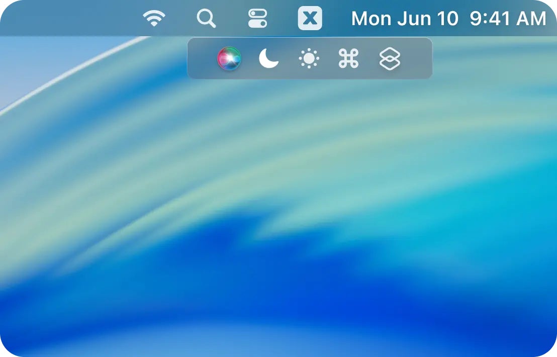 BuhoBarX は、Mac のメニューバーに並ぶアプリアイコンを 自由に隠したり整理できる ユーティリティです。複数アプリを同時に開いていても、メニューバーを常にすっきりと保てます。