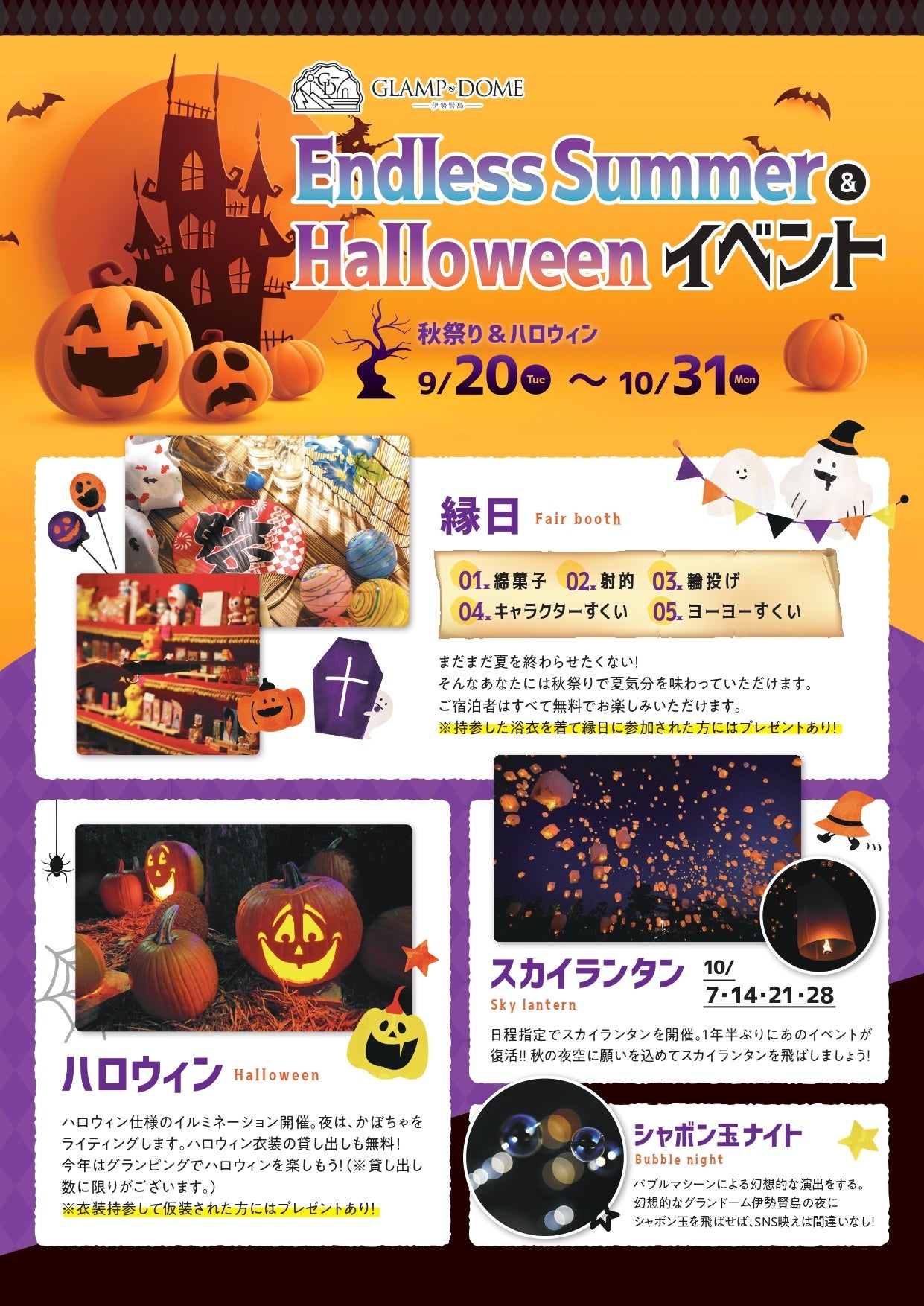 グランドーム伊勢賢島(所在地:三重県志摩市阿児町神明863‐4)は今年最大のイベント【Endless Summer & Halloweenイベント】を開催しております!