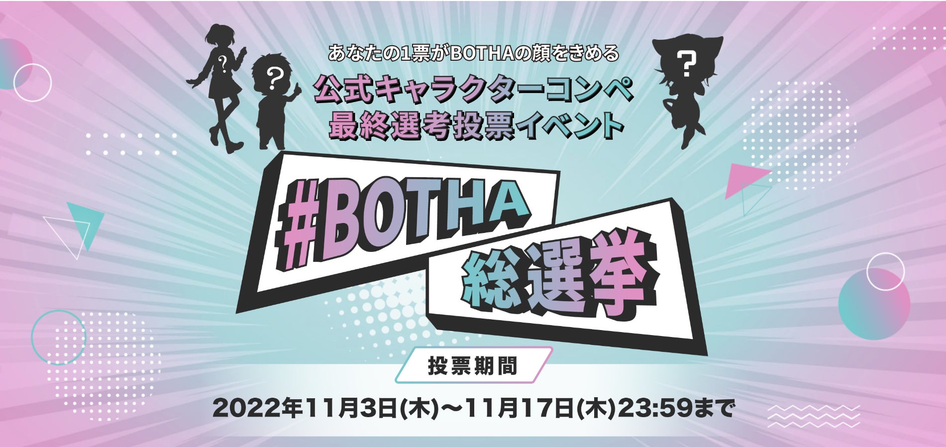 【公式キャラクター総選挙!!/同人クリエイター作品販売EC×SNS融合型プラットフォーム「BOTHA(ボータ)」最終投票受付中」投票期間:2022年11月3日~11月17日23:59まで】