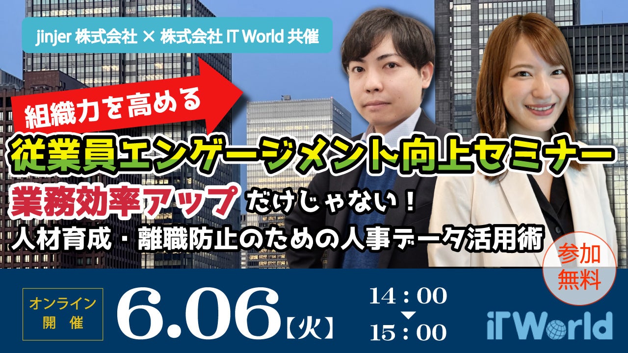 【離職防止・定着率向上】従業員エンゲージメントの向上と人事データの活用についての無料WEBセミナーを6月6日(火)に開催【株式会社IT World】