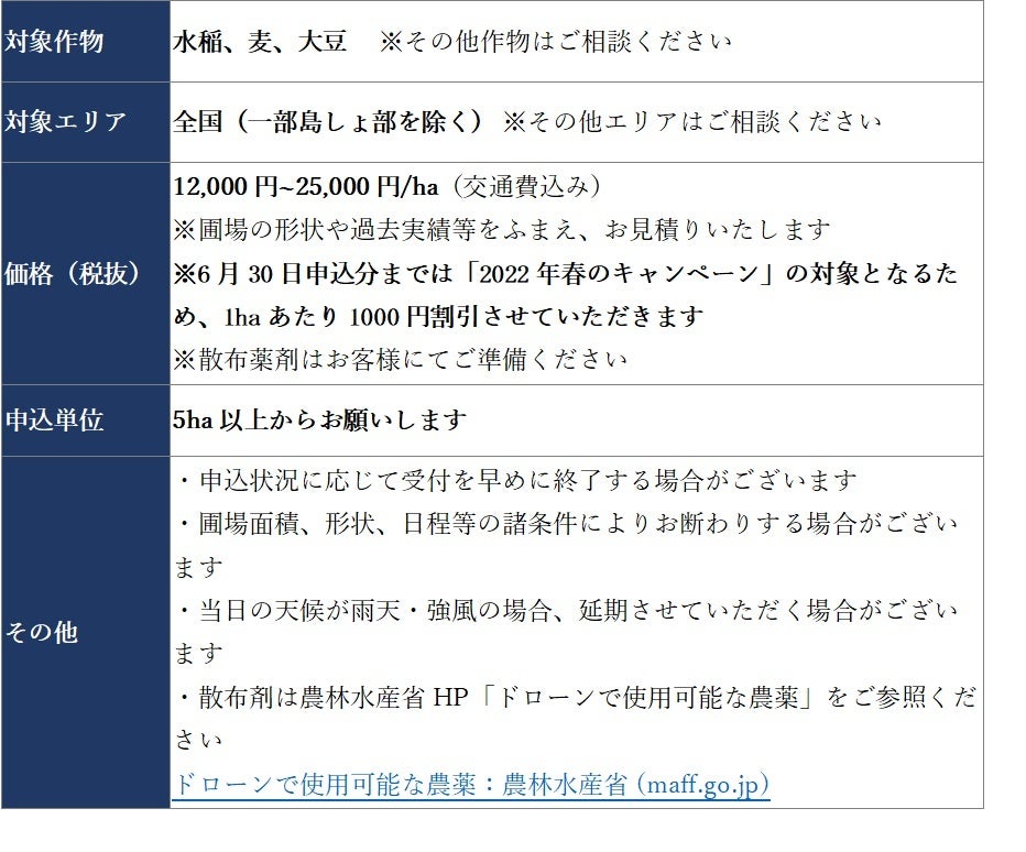 おまかせeドローン(農薬散布代行)の2022年受付開始並びに散布パートナーの募集について