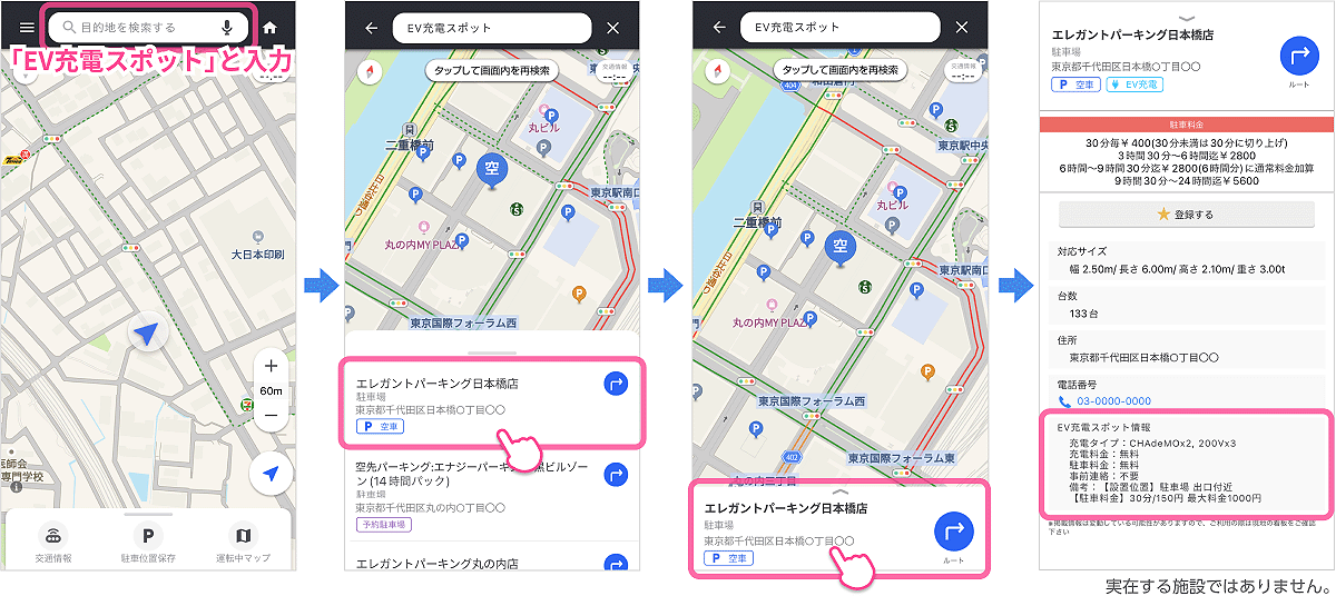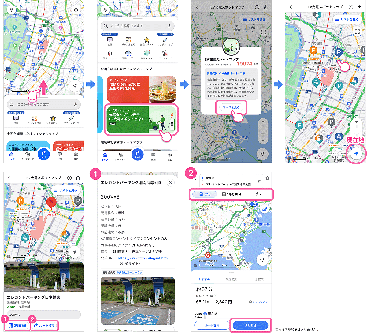 4.施設の詳細情報内に充電タイプなどスポットごとの詳細な情報が表示(※6)