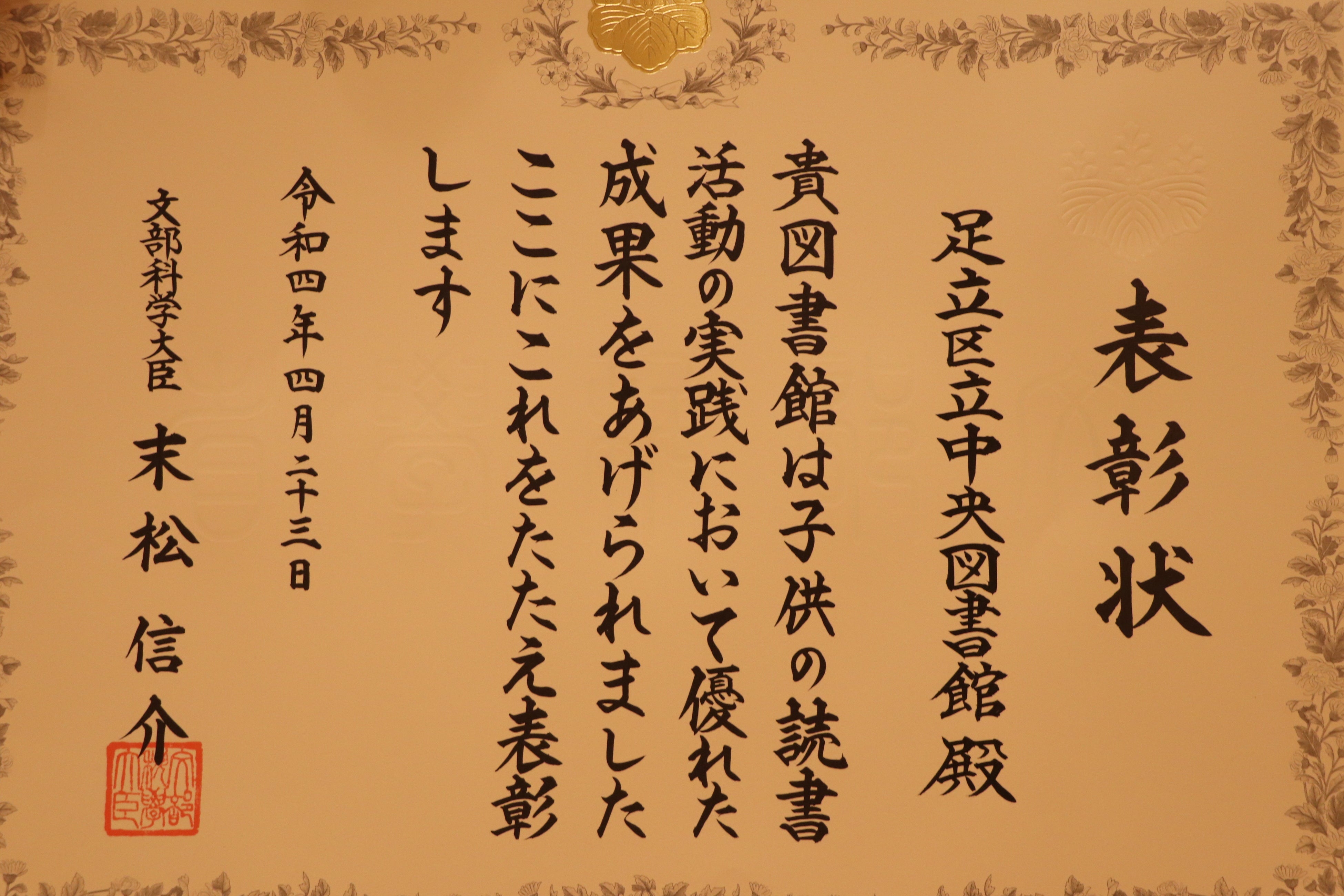 足立区として初の受賞!区立中央図書館が「子どもの読書活動優秀実践図書館」に選ばれ、文部科学大臣表彰を受賞しました!