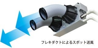 また、フレキダクトを取り付けることにより、工場内の特定の場所へピンポイントで送風するスポットクーラーとしてもお使いいただけます。