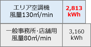これは、「エリア空調機」が高効率のECファンを搭載しており、一般的なパッケージエアコンよりも効率的に送風することができるためです。