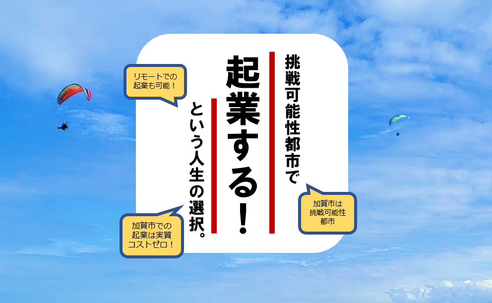 加賀市ではイノベーションセンターへの入居等の一定の条件をクリアすることで創業に必要な経費を支援する制度があります(※詳細はお問い合わせください)。これらの制度をうまく利用し、加賀市の利害と起業家の利害をうまく調整することで、実質コストゼロ起業が可能になります。当プログラムでは実質コストゼロ起業を実現するためのサポートも致します。
