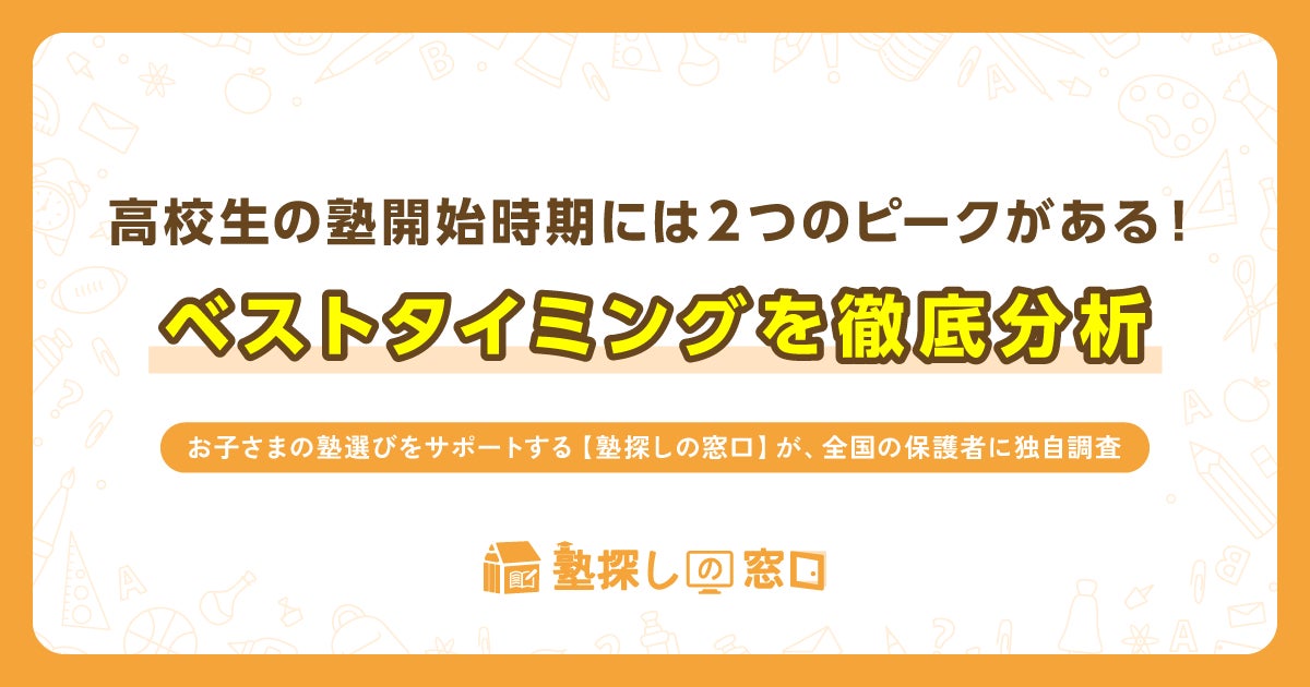 全国の塾情報を掲載し、保護者の方の効率的な塾選びをサポートする「塾探しの窓口」は、高校生以上の子どもをもつ保護者551名を対象に「高校生の子どもが教育サービスを利用し始めた時期」に関する調査を実施しました。