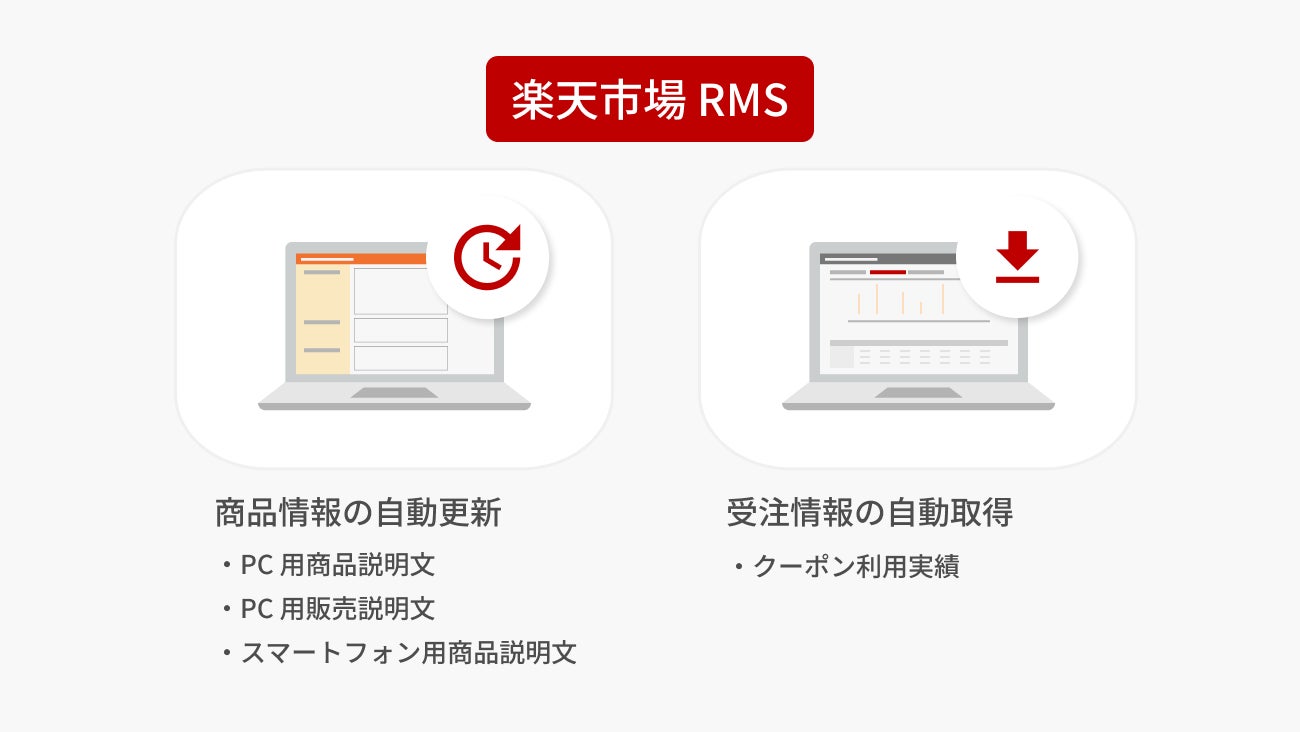 「楽天市場 RMS」利用の EC 事業者向けに、「共有説明文(大)/あす楽設定の更新」を自働化する新たな機能をリリース