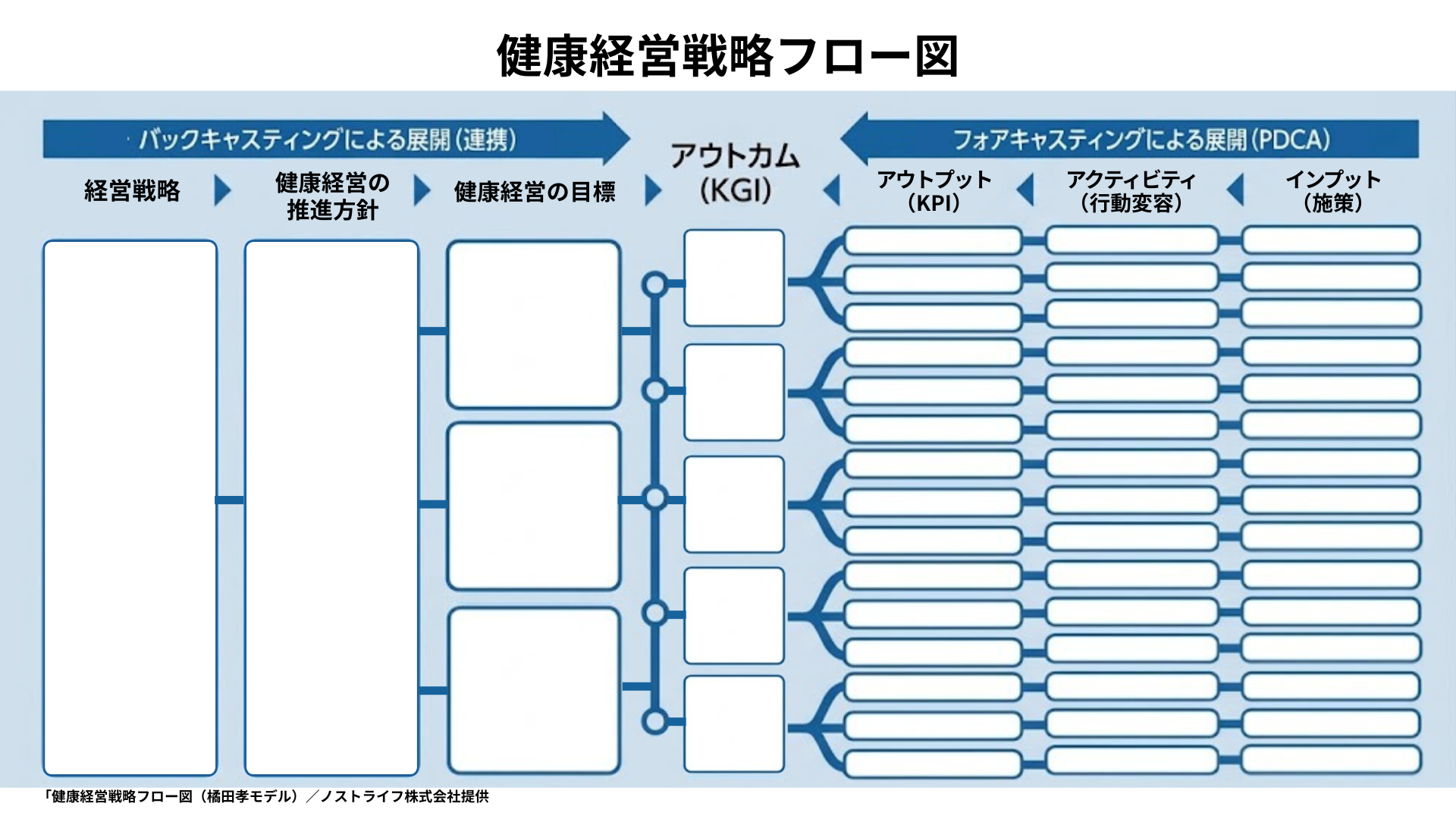 「健康経営戦略フロー図(橘田孝モデル)/ノストライフ株式会社提供」と記載してください。