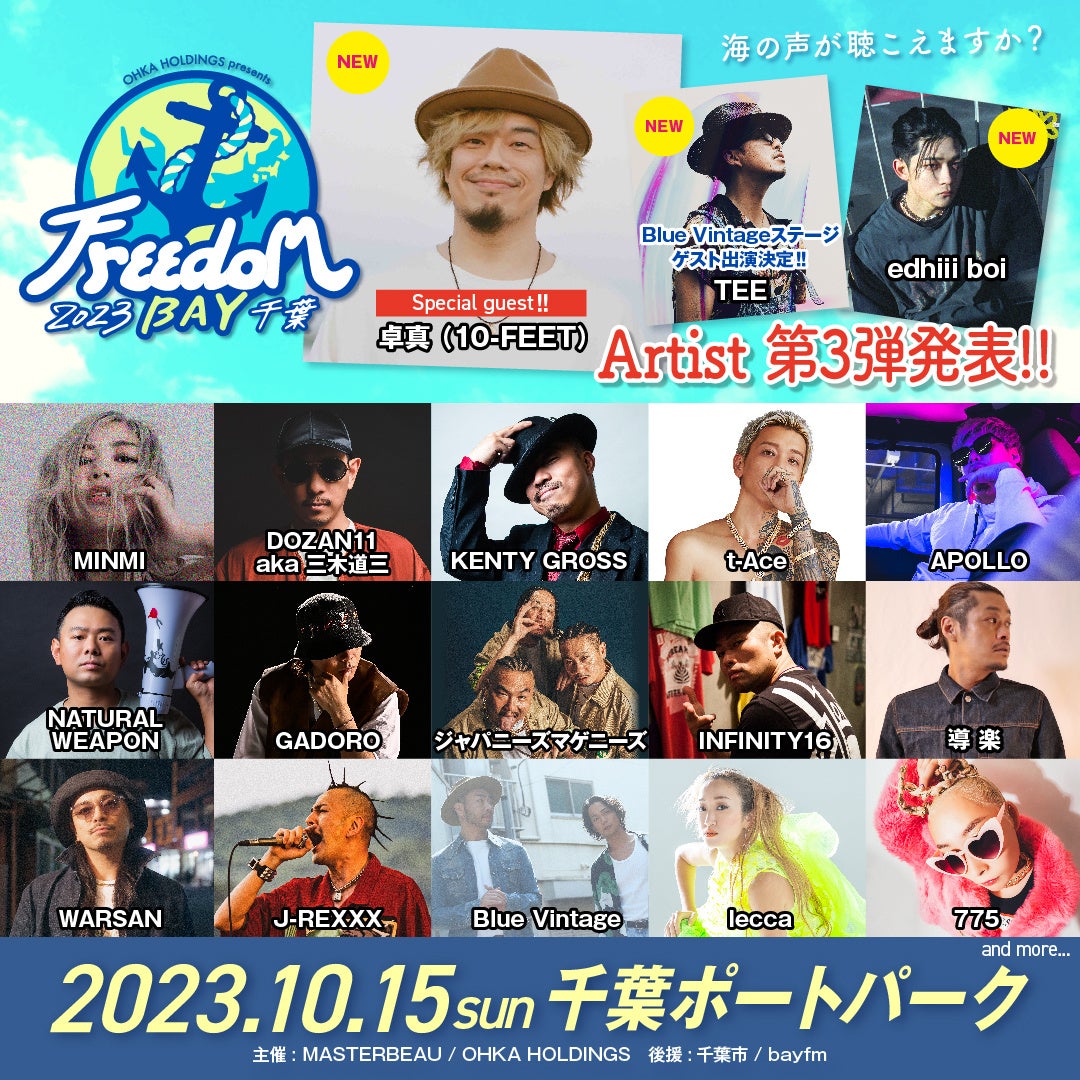 MINMI主催「Freedom BAY 2023 千葉」第3弾アーティスト卓真(10-FEET)、TEE、edhiii boi緊急参戦!