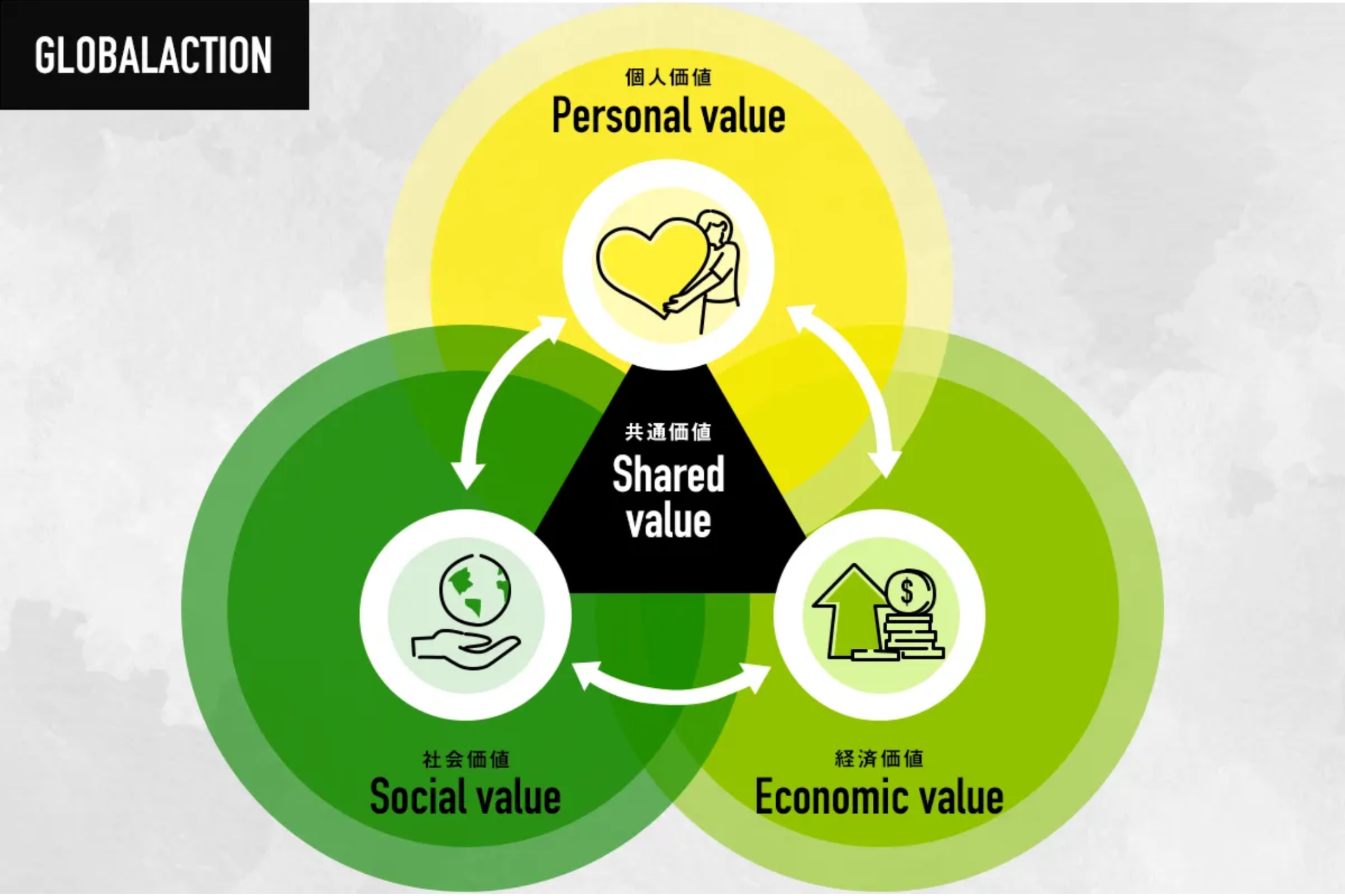 ※GLOBALACTION:昨今「サステナビリティ」が謳われる中で、「エシカル消費」や「フードロス」など地球を守るため、社会を守るため『正しい選択』をすること(責任)が求められる時代になりました。しかし、 『正しい選択』をする以前に、自分にとってもそれが『楽しい選択』すなわち『好き』という感情がなければ、私たちの営みも持続していきません。みんなが「自分はコレが大切なんだ!好きなんだ!おもしろいんだ!」というコトを、もっと表現できる社会になってもいい。「個人価値(そのヒトにとっていいコト)」をカタチにすることを通じて、経済・社会の価値も生み出していく。個人・経済・社会の価値が重なる取り組みが、BIKAS COFFEEの考える『GLOBALACTION』です。