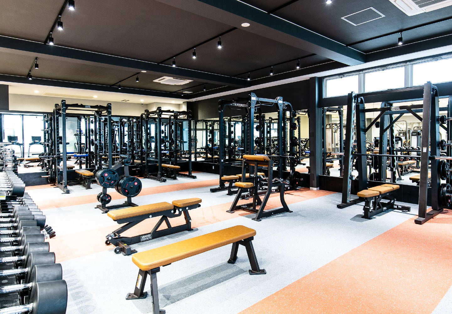 広々とした余裕のある店内に、様々な筋トレ&有酸素マシンを設置、フリーウエイトも充実しています。また、足腰に負担の少ないストレッチエリアも導入しております。