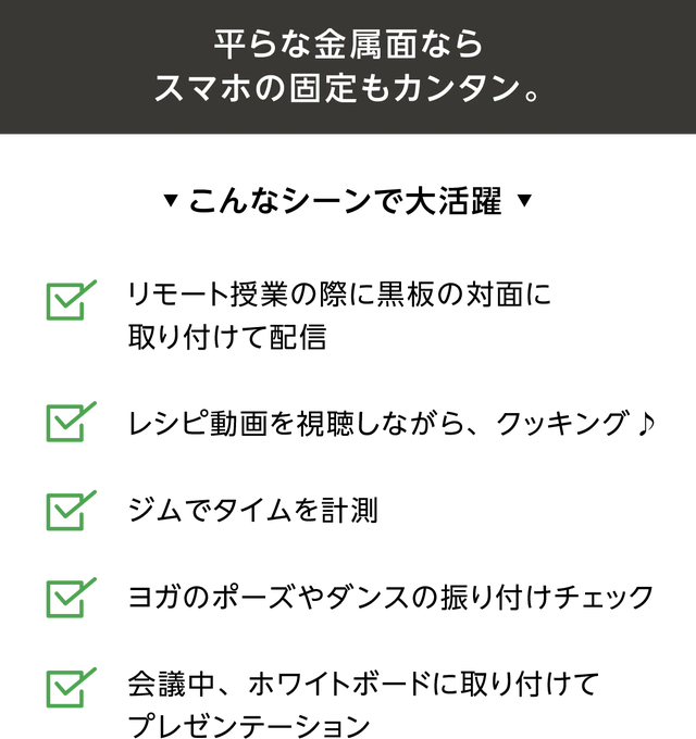 スマホスタンドの概念を覆す、最強を目指すオールラウンダーガジェットは高い機能性のほかに、薄さや軽量化にもこだわり、まるでスマホの一部かのような見た目を実現しました。