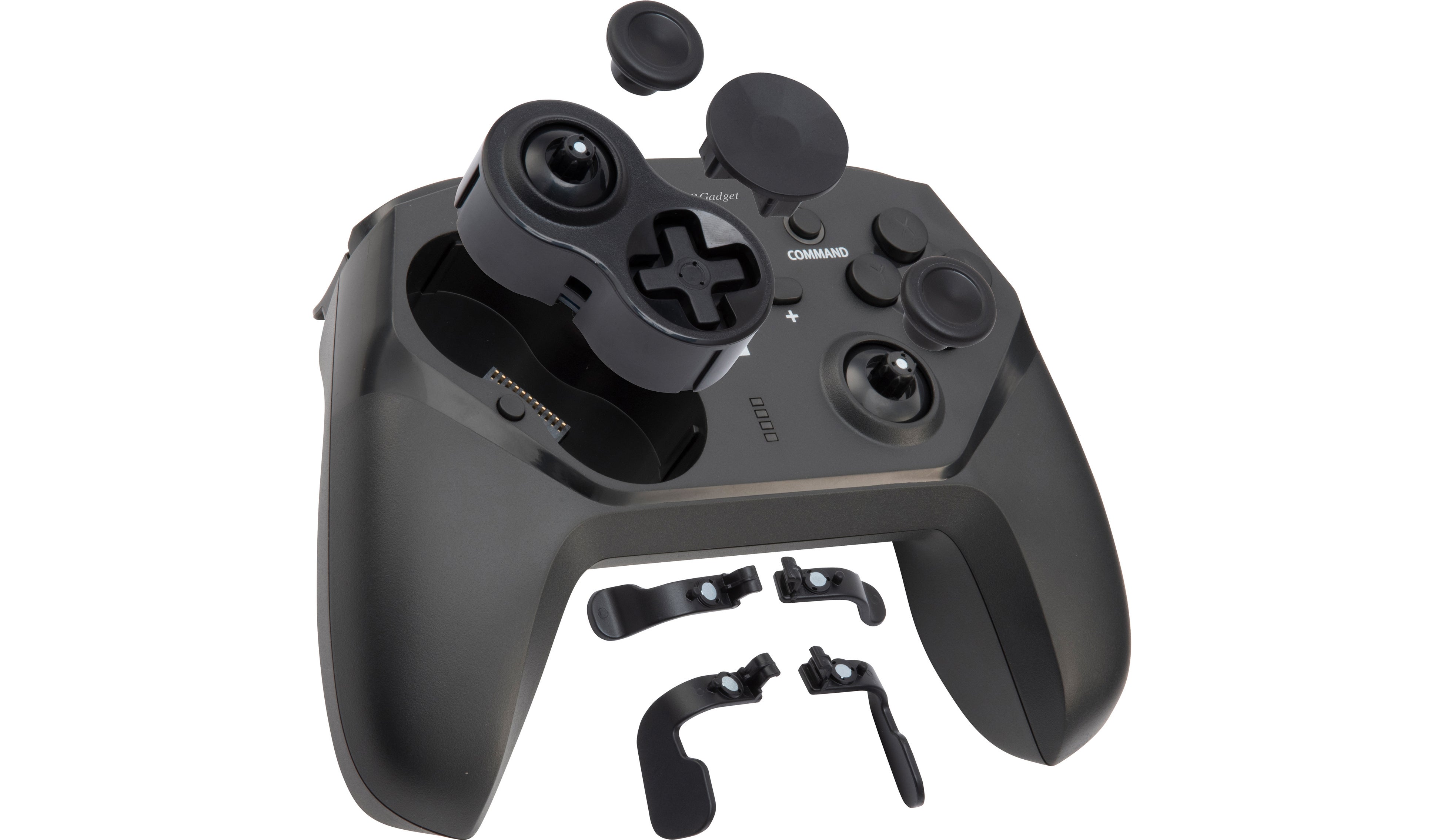 本製品は、アナログスティックや方向ボタンのカスタマイズ機能を搭載した、無線&有線接続両対応の本格派ゲームコントローラーです。遊ぶゲームに合わせて左アナログスティックと方向ボタンの配置の入れ替えや、スティックの高さと方向ボタンの形状の交換などが可能。背面には、取りはずし可能な4つの拡張パドルボタンを配置しています。さらに、難しいコマンドもボタン1つで発動できるマクロ機能や、連射&連射ホールド機能、ジャイロ&加速度センサーを搭載し、さまざまなゲームを存分に楽しむことができます。