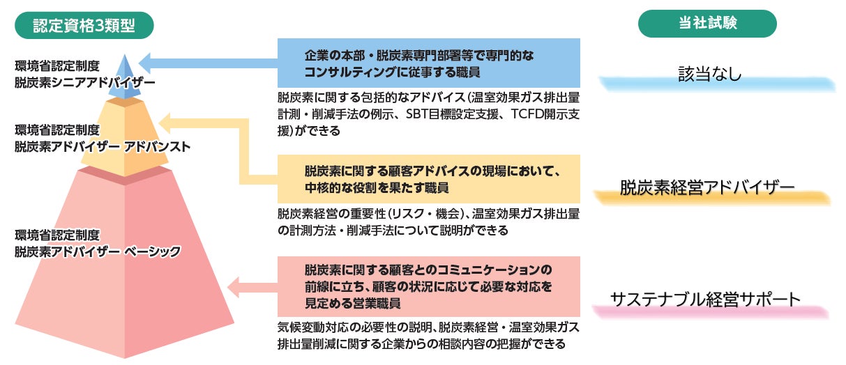 「脱炭素経営アドバイザー」は、主に金融機関の行職員や企業のサステナビリティの担当者等が、取引先企業の脱炭素経営を支援するために必要な知識・実務スキルを体系的に習得し、その習得度を測ることを目的とした検定試験です。