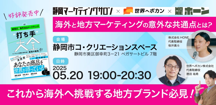 「海外マーケティング」と「地方マーケティング」、一見すると対局にある「海外と地方」ですが、実は意外な共通点があるんです。海外・地方それぞれ、どんな課題設定をしなければならないのか?どんなマーケティング戦略・施策が必要なのか?具体的にどんな事例があるか?を解説していきます。これから海外へ挑戦する地方ブランド必見の内容となっています。また、本イベントは4月1日に世界へボカン 代表取締役である徳田さんが発売した「越境EC&海外Webマーケティング“打ち手”大全 インバウンドを契機に世界を狙う 最強の戦略 91」の解説も行います。当日はアトツギの方たちも参加されるということで、伝統工芸品やアトツギの皆さんにとっても役立つ成功事例や考え方について共有していきたいと思います。