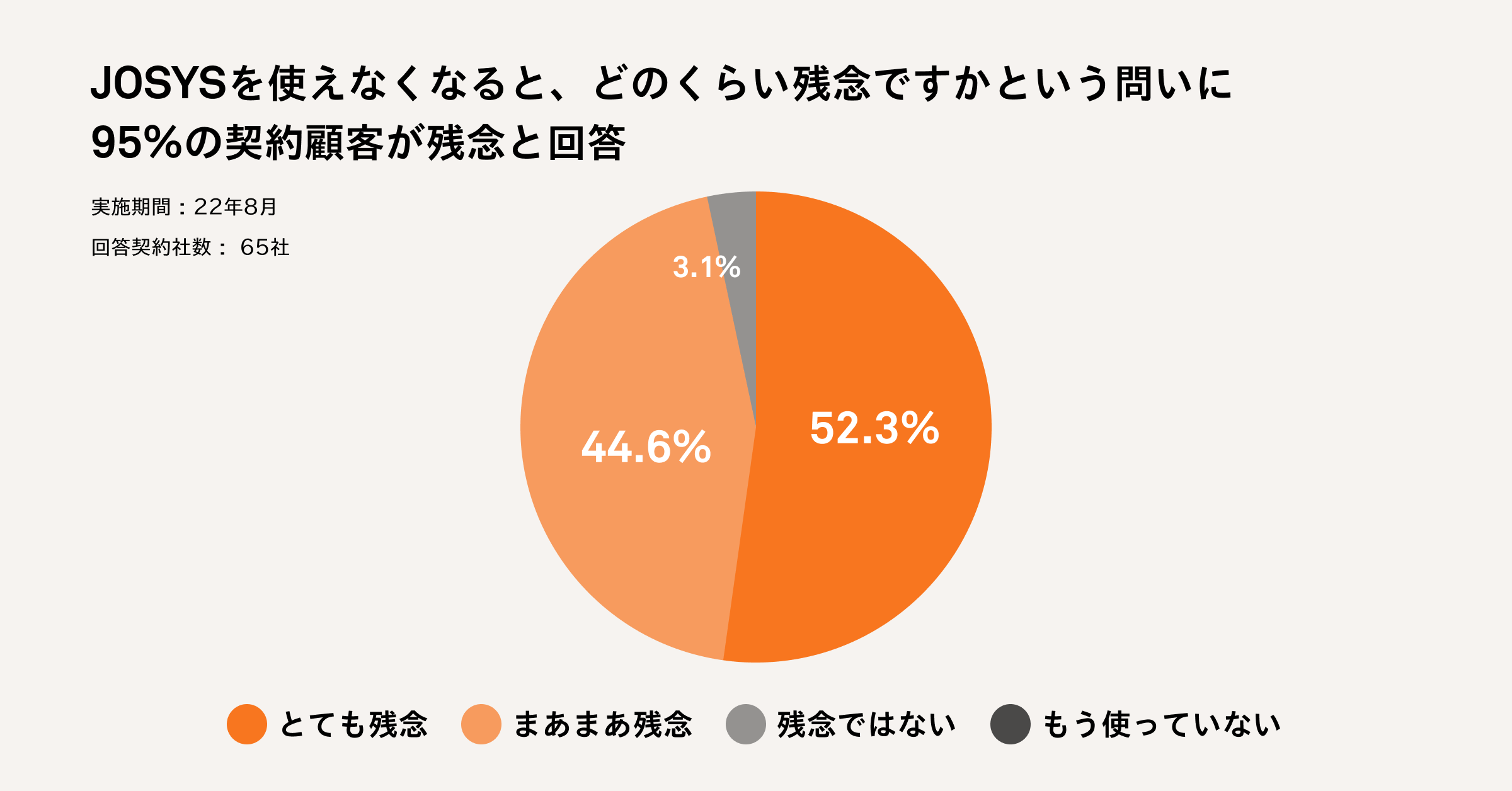 この1年を振り返ると、9ヶ月前に比べMRR(売上)は29倍に増加しました。2022年8月に実施した契約顧客の利用満足度を測るエリステストでは、50%以上の契約顧客が「ジョーシスを使えなくなると、とても残念」と回答を頂き、お客様の課題解決にジョーシスのテクノロジーが寄与できているという自信を深めております。