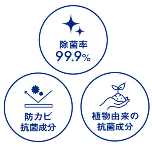 アルカリベースの水に植物由来の安全性に優れた防カビ抗菌成分を配合。