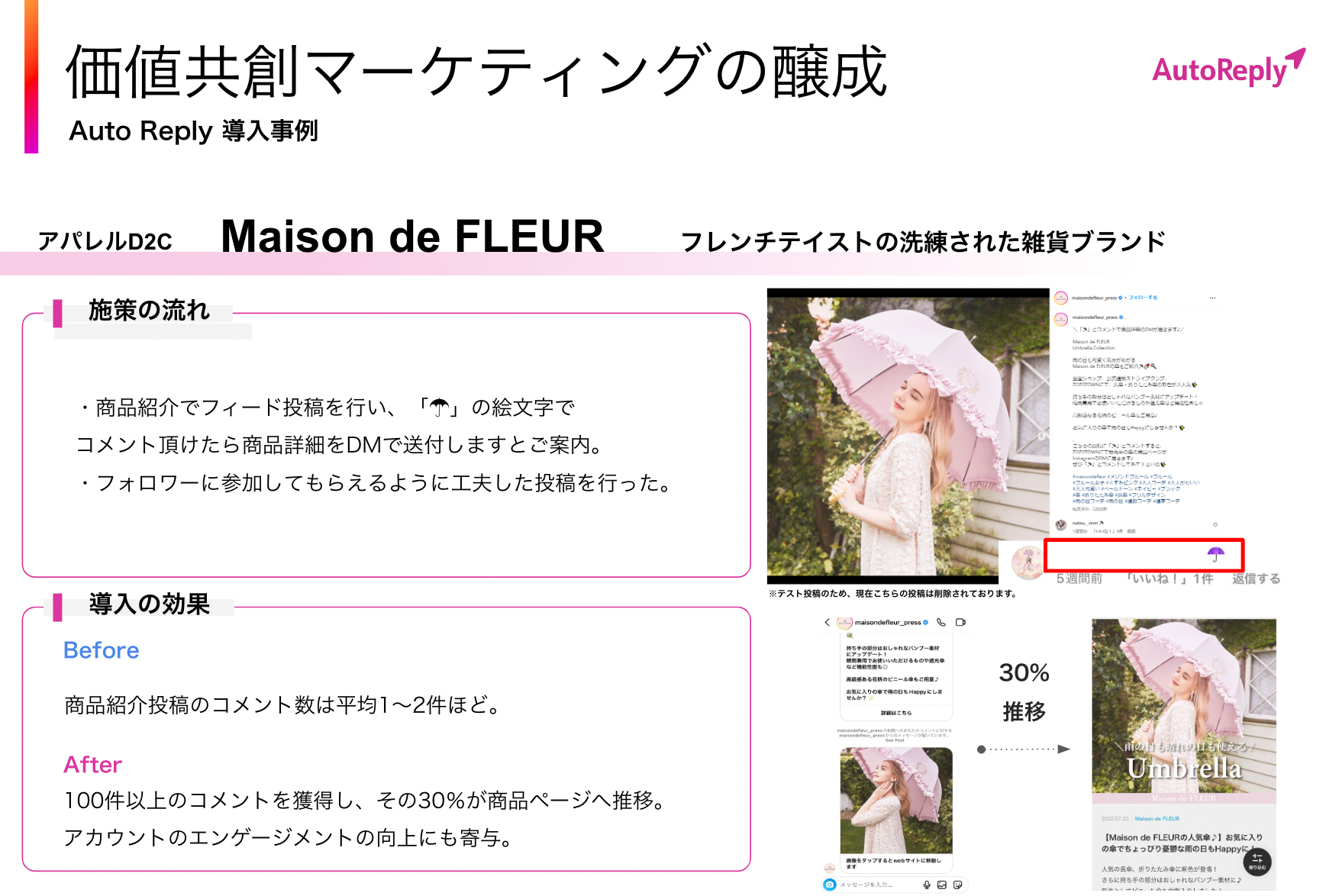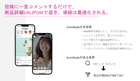 以上の背景をうけ、SARUCREW提供の「#hash」をご利用中のインフルエンサー様、そして企業様の成果や売上最大化を目指すべく、将来的にはインフルエンサー様が「#hash」上で「AutoReply」を利用できるような世界を見据えて協業を開始することとなりました。