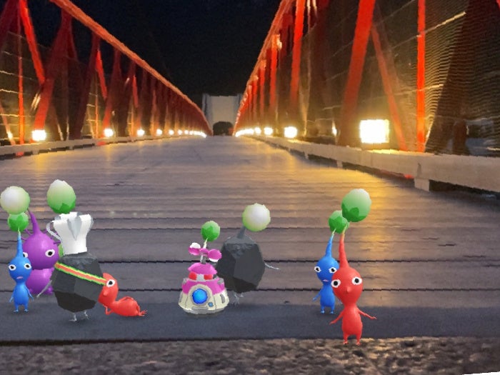 Pikmin Bloomアプリ内のARモードを使えば、あかりアートや美濃の風景にピクミンが映り込んだ思い出の写真を撮影する事が可能です。