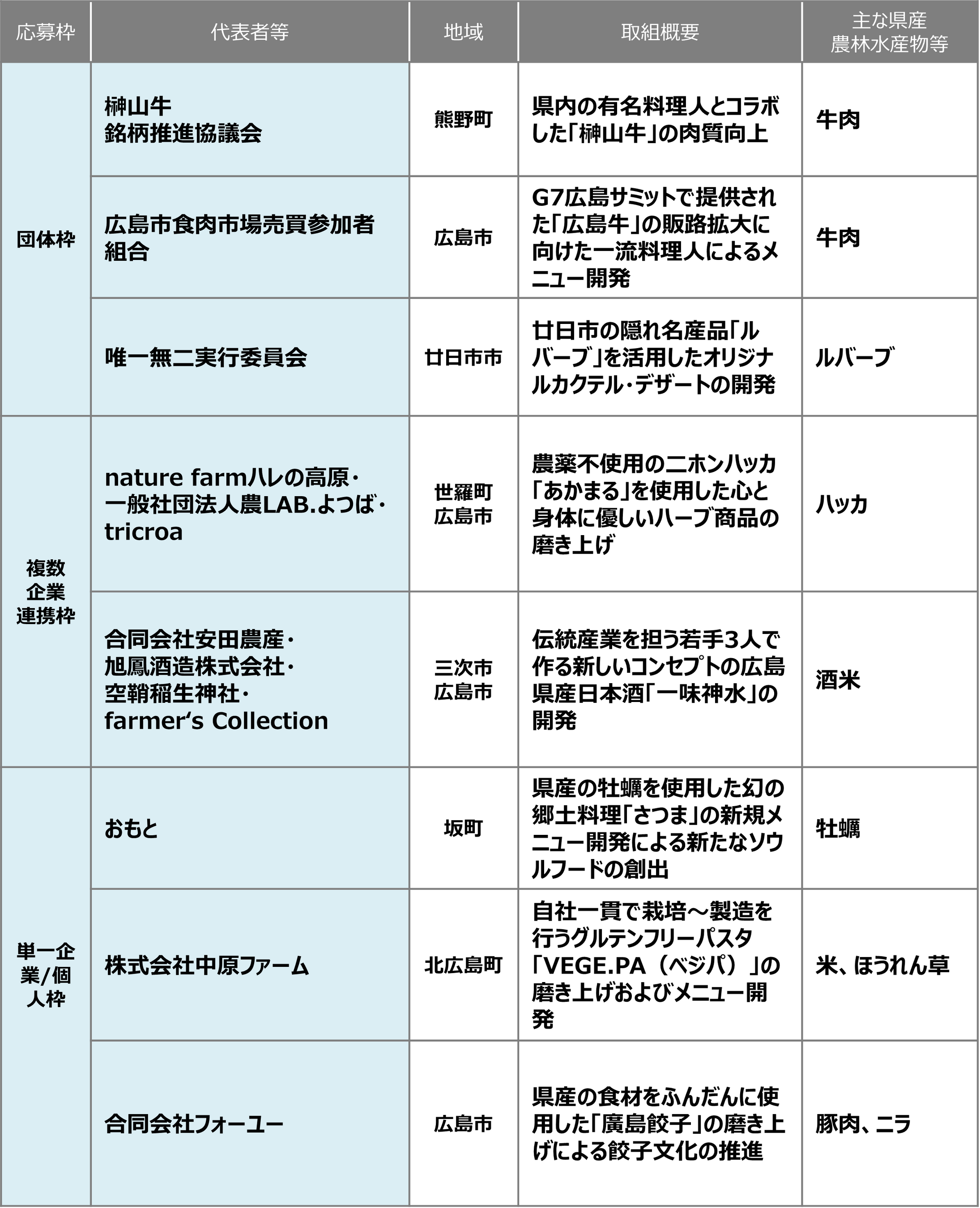 HIROSHIMA FOOD HEROES CHALLENGE WAVE3 採択者