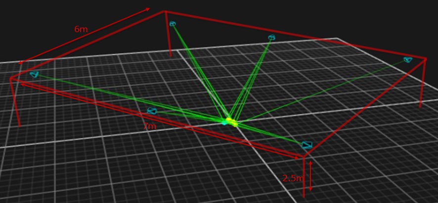 ³ カメラは6台利用、カメラ設置空間サイズに対し中央を囲む形で均等に配置。(下図ご参考)